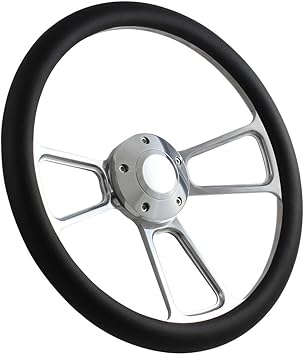 5 Bolt Black Steering Wheel 14 Inch Aluminum With Black Vinyl Wrap 5 Bolt Steering Wheel