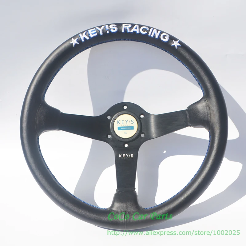 Universal 14inch 350mm Keys Racing Leather Steering Wheel Black Keys Racing Steering Wheel