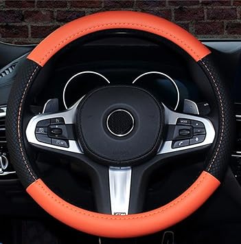 Amazon Com Moyishi Top Leather Steering Wheel Cover Universal Fit Orange Steering Wheel Cover