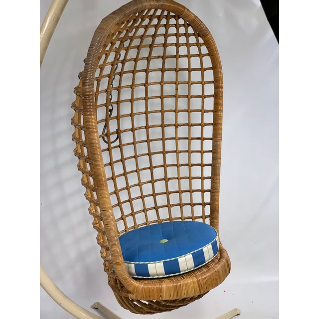 Vintage Modern Hanging Rattan Egg Chair With Castiron Stand Chairish Vintage Egg Chair For Sale