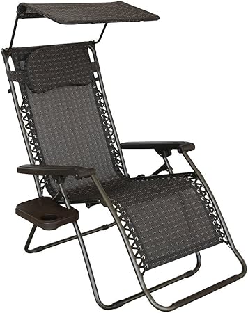 The chair also comes with a sunshade canopy which. Bonnlo zero gravity chair with canopy patio sunshade lounge chair adjustable folding shade reclining chairs with cup holder and headrest for beach garden grey 4 4 out of 5 stars 72 89 95. Lounge chairs zero gravity chairs case of 2 navy blue lounge patio chairs outdoor yard beach chair patio furniture sets for.